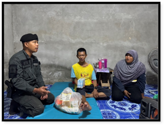 พ.ต.ท.วิสันต์ ดำสีแก้ว สวป.สภ.รามัน รรท.สว.สภ.ท่าธง จิตอาสาตรวจเยี่ยมผู้ป่วยในพระราชานุเคราะห์ พร้อมมอบของอุปโภคบริโภค ให้แก่ผู้ป่วยในพระราชานุเคราะห์ เพื่อสร้างความสัมพันธ์อันดีระหว่างข้าราชการตำรวจกับประชาชน ณ ต.ท่าธง อ.รามัน จว.ยะลา