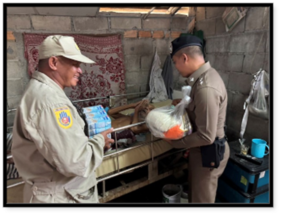 พ.ต.ท.วิสันต์ ดำสีแก้ว สวป.สภ.รามัน รรท.สว.สภ.ท่าธง พร้อมด้วยข้าราชการจิตอาสา สภ.ท่าธง ตรวจเยี่ยมผู้ป่วยในพระราชทาน พร้อมได้มอบสิ่งของอุปโภคบริโภค ให้กับผู้ป่วยติดเตียง เพื่อสร้างความสัมพันธ์อันดีระหว่างตำรวจกับประชาชนในเขตพื้นที่รับผิดชอบ ณ ม.1 ต.ท่าธง อ.รามัน จว.ยะลา