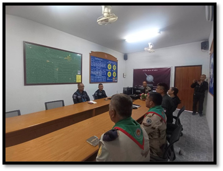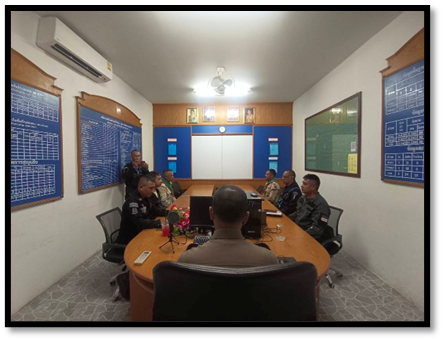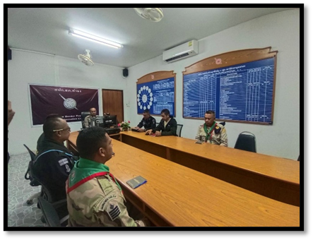 เวลา 10.30 น. พ.ต.ท.วิสันต์ ดำสีแก้ว สวป.สภ.รามัน รรท.สว.สภ.ท่าธง, ร.ต.อ.สมวุฒิ มณีนิยม รอง สว.สส.สภ.ท่าธง, ร.ต.อ.เฉลิมศักดิ์ ศรีสาย รอง สวป.สภ.ท่าธง, มญ.อิสมาแอ วาจา รอง.ชคต.วังพญา, อส.ทพ.ธีรยุทธ หวังหมัด พลลาดตะเวน, อส.ท.อาซูวาง วานิ จ่ากอง, มญ.สมจิตร์ อินโท หน.ชคต.ท่าธง และเจ้าหน้าที่ที่เกี่ยวข้องเข้าร่วมประชุมหารือปรึกษากับผู้นำ 3 ฝ่าย เกี่ยวกับสถานการณ์แนวโน้มการก่อเหตุในพื้นที่ พร้อมแลกเปลี่ยนข้อมูลข่าวสารอัปเดตข้อมูลร่วมกันเพื่อจำกัดเสรีภาพป้องกันการก่อความไม่สงบของฝ่ายตรงข้าม ในเขตพื้นที่รับผิดชอบ ณ ห้องประชุม ศปก. สภ.ท่าธง