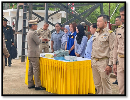 เวลา 10.30 น. พล.ต.ต.นิตินัย หลังยาหน่าย รอง ผบช.ภ.9 พ.ต.ท.วิสันต์ ดำสีแก้ว สวป.สภ.รามัน รรท.สว.สภ.ท่าธง พร้อมผู้นำหน่วย 3 ฝ่ายร่วมให้การต้อนรับ องคมนตรี พร้อมคณะฯ เดินทางมาตรวจเยี่ยม มอบขวัญกำลังใจพร้อมมอบสิ่งของพระราชทานให้แก่ เจ้าหน้าที่ผู้ที่รับผลกระทบต่อเหตุความไม่สงบในพื้นที่ ๓ จังหวัดชายแดนใต้ โดยมี พล.อ.ไพบูลย์ คุ้มฉายา องคมนตรี เป็นประธานในพิธี