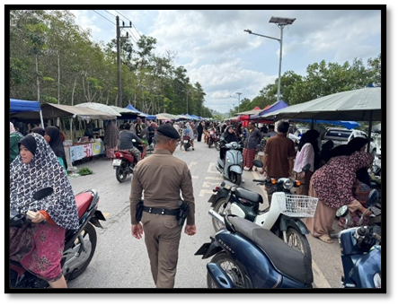 เวลา 10.00 น. พ.ต.ท.วิสันต์ ดำสีแก้ว สวป.สภ.รามัน รรท.สว.สภ.ท่าธง ออกตรวจความเรียบร้อย ความปลอดภัย พร้อมอำนวยความสะดวก และสร้างความอุ่นใจให้แก่ประชาชน ในเขตพื้นที่รับผิดชอบ ณ ตลาดนัดสระน้ำ ต.วังพญา อ.รามัน จว.ยะลา