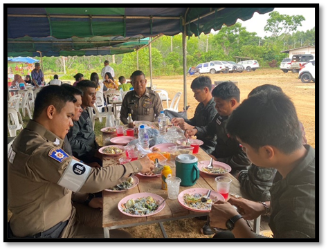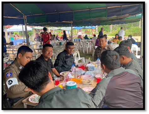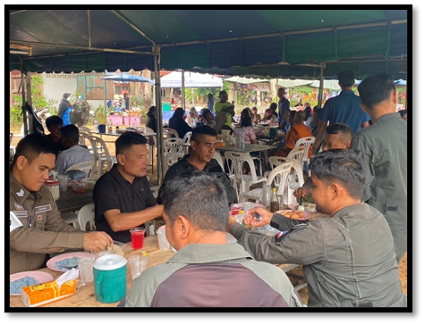 วันที่ 16 ม.ค. พ.ศ.2568 เวลา 12.30 น. พ.ต.ท.วิสันต์ ดำสีแก้ว สว.สภ.ท่าธง ร.ต.อ.เฉลิมศักดิ์ ศรีสาย รอง สวป.สภ.ท่าธง ร.ต.อ.สงวนศักดิ์ แก้วหมุน รอง สว.(สอบสวน)สภ.ท่าธง ร่วมผู้นำ 3 ฝ่าย จิบน้ำชา และรับประท่านอาหารมื้อกลางวัน พร้อมพูดคุยปรึกษาหารือเกี่ยวการทำการเจาะบาดาลในบริเวณวัดรังสิตาวาส ณ ศูนย์พัฒนาเด็กเล็ก ม.4 ต.ท่าธง อ.รามัน จ.ยะลาเหตุการณ์ทั่วไปปกติ