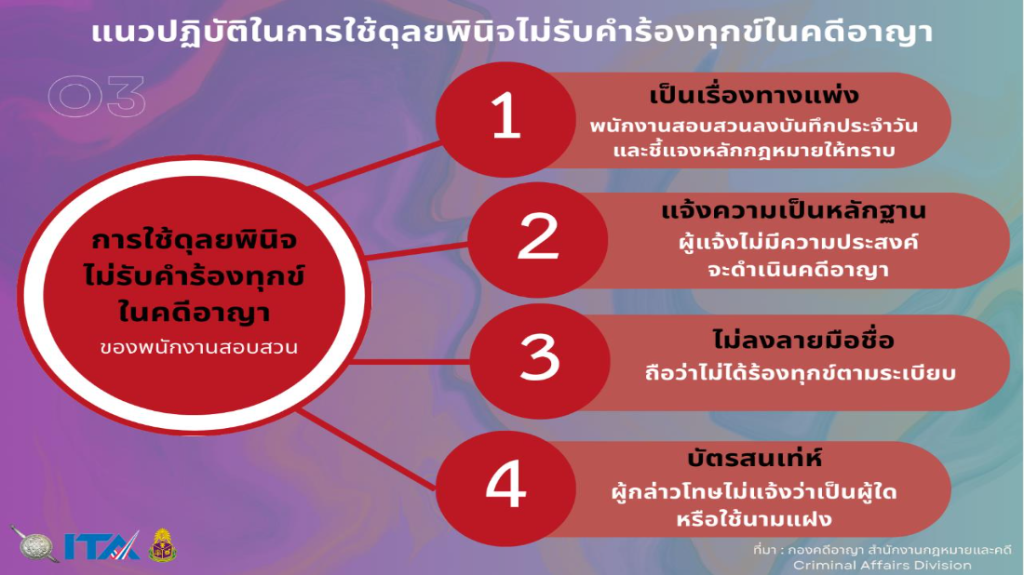 แนวปฏิบัติในการใช้ดุลยพินิจไม่รับคำร้องทุกข์ ในคดีอาญา